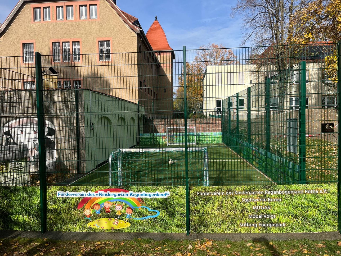 Der Kindergarten "Regenbogenland" Rötha kann sich auf einen neuen Bolzplatz freuen - die SEWI unterstützt dieses Projekt mit 8.000 Euro.
